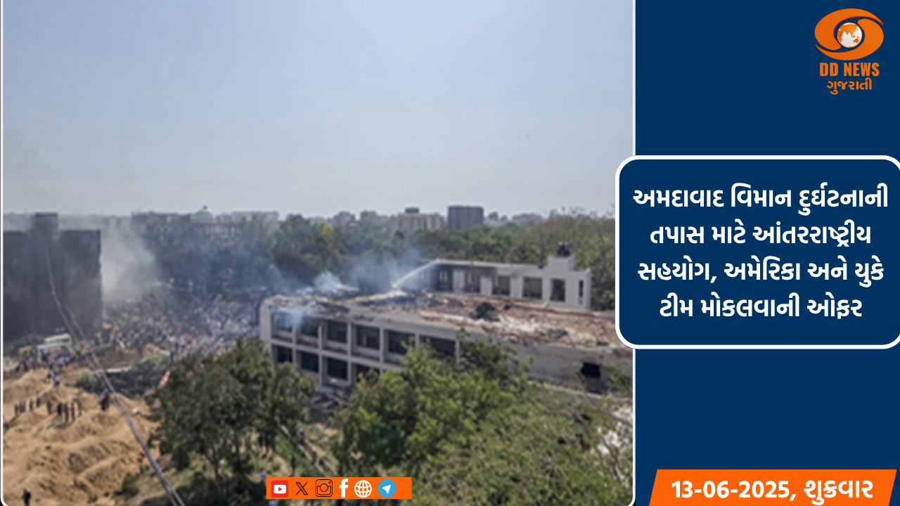 બ્રિટન અને યુએસે અમદાવાદ વિમાન દુર્ઘટનાની તપાસમાં સહયોગની ઓફર કરી છે.