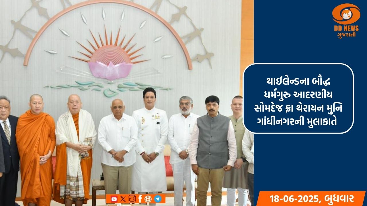 થાઇલેન્ડનું એક થાઇ આધ્યાત્મિક અને સાંસ્કૃતિક પ્રતિનિધિમંડળ, સર્વોચ્ચ પિતૃપ્રધાન સોમદેજ ફ્રા થેરાયનમુનિના નેતૃત્વમાં, ભારતની 7 દિવસની મુલાકાતે છે અને ગુજરાતમાં 5 દિવસનો પ્રવાસ કરવાના છે.મુખ્યમંત્રી ભૂપેન્દ્ર પટેલ સાથેની આ મૂલાકાત બેઠકમાં પ્રતિનિધિમંડળે અમદાવાદ ખાતે દુ:ખદ વિમાન દુર્ઘટનામાં મૃત્યુ પામેલા લોકો પ્રત્યે સંવેદના વ્યક્ત કરી હતી.આ પ્રતિનિધિમંડળમાં થાઇલેન્ડના 7નાગરિકો જેમાં બે સર્વોચ્ચ સાધુઓ, સંઘ સુપ્રીમ કાઉન્સિલ ઓફ થાઇલેન્ડ એબોટ વાટ દેબસિરીન્દ્રવાસનો સમાવેશ થાય છે. થાઇલેન્ડના વડા પ્રધાનના સલાહકાર પ્રોફેસર ટોંગથોંગ ચંદ્રાંસુ પણ આ પ્રતિનિધિમંડળ સાથે ગુજરાત રાજ્યની મુલાકાતે છે. જેમણે રામાયણ અને ભગવાન બુદ્ધના જીવન પરની ટીવી સિરિયલમાં મુખ્ય ભૂમિકા ભજવી હતી તે ગગન મલિક પણ આ પ્રતિનિધિમંડળમાં જોડાયા છે.