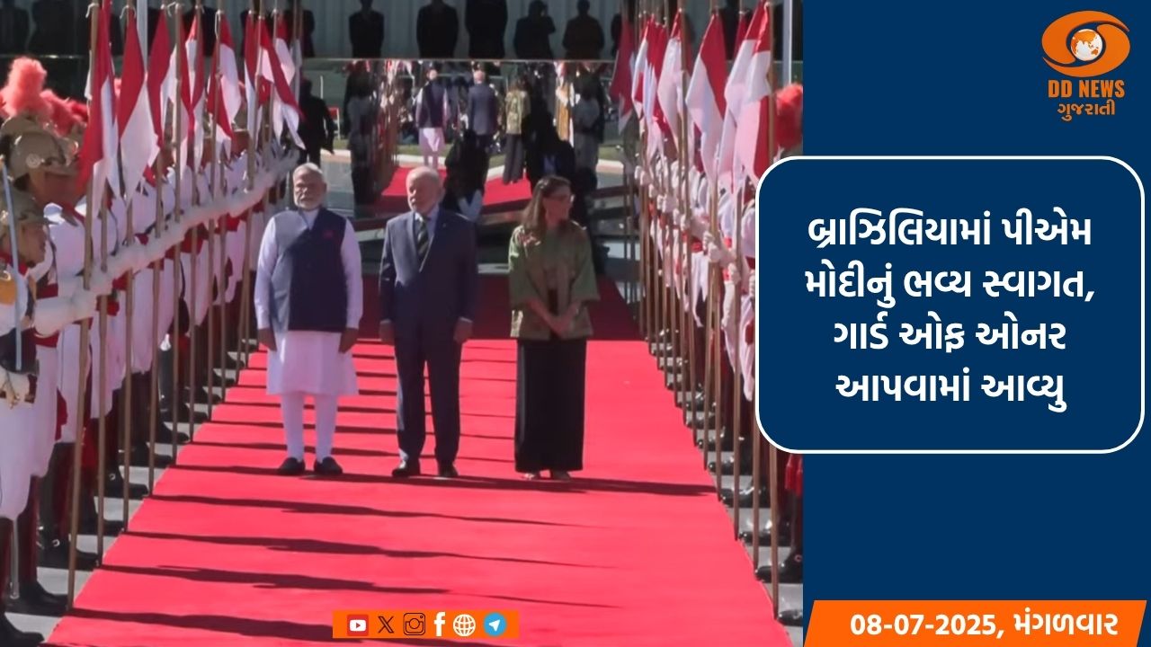 પાંચ દેશોની મુલાકાતના ચોથા તબક્કામાં પ્રધાનમંત્રી મોદી બ્રાઝિલની રાજ્ય મુલાકાતે છે. રિયો ડી જાનેરોમાં બ્રિક્સ સમિટમાં હાજરી આપ્યા પછી પ્રધાનમંત્રી મોદી દેશની રાજ્ય મુલાકાતે આવ્યા છે. આજે, બ્રાઝિલિયામાં પ્રધાનમંત્રી મોદીનું ખાસ ઔપચારિક સ્વાગત કર્યા પછી,114 ઘોડેસવારોની ટુકડી દ્વારા તેમનું ભવ્ય સ્વાગત કરવામાં આવ્યું. લશ્કરી સન્માન અને પ્રતિનિધિઓના પરિચય સાથે, બંને નેતાઓ મર્યાદિત ફોર્મેટની બેઠક માટે રવાના થયા, જે પછી પ્રતિનિધિમંડળ-સ્તરની વાટાઘાટો થશે. વિવિધ કરારો પર હસ્તાક્ષર સમારોહ યોજાશે અને ત્યારબાદ નેતાઓ દ્વારા પ્રેસને નિવેદનો આપવામાં આવશે. આ પછી, પ્રધાનમંત્રી મોદી અલ્વોરાડા પેલેસ ખાતે રાજ્ય ભોજન સમારંભનું આયોજન કરવામાં આવશે.પ્રધાનમંત્રી મોદી અગાઉ ત્રણ વખત બ્રાઝિલની મુલાકાત લઈ ચૂક્યા છે, પ્રથમ જુલાઈ 2014 માં, પછી 2019 માં બ્રિક્સ સમિટમાં હાજરી આપવા માટે અને ગયા વર્ષે નવેમ્બરમાં રિયો ડી જાનેરોમાં G-20 સમિટમાં હાજરી આપવા માટે.