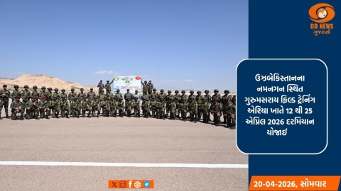 ભારત-ઉઝબેકિસ્તાન સંયુક્ત લશ્કરી કવાયતની 7મી આવૃત્તિ, કવાયત DUSTLIK 2026, ઉઝબેકિસ્તાનના નમનગન સ્થિત ગુરુમસરાય ફિલ્ડ ટ્રેનિંગ એરિયા ખાતે 12 થી 25 એપ્રિલ 2026 દરમિયાન યોજાઈ રહી છે.