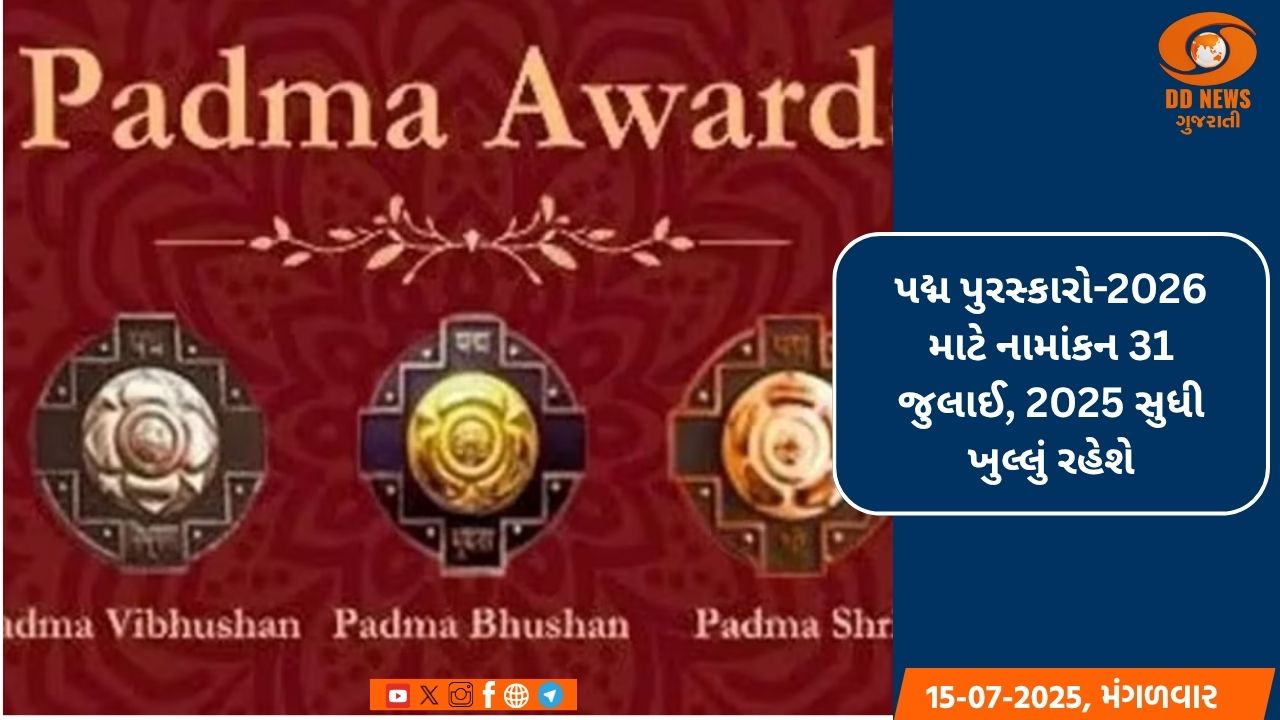 પદ્મ પુરસ્કારો-2026 માટે નામાંકન 31 જુલાઈ, 2025 સુધી ખુલ્લું રહેશે