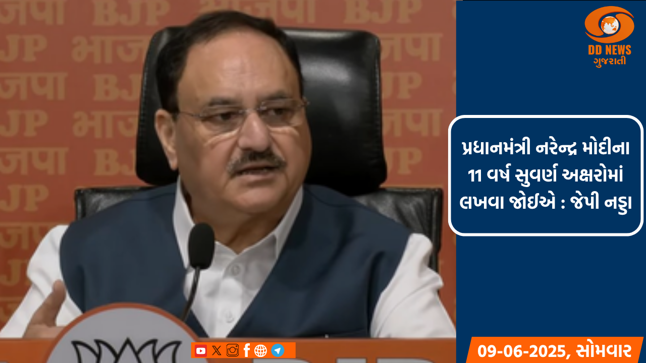પ્રધાનમંત્રી નરેન્દ્ર મોદીના 11 વર્ષ સુવર્ણ અક્ષરોમાં લખવા જોઈએ : જેપી નડ્ડા
