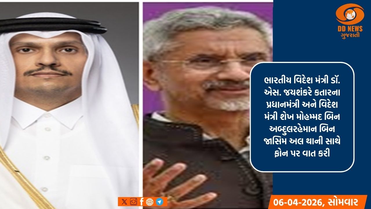 ભારતીય વિદેશ મંત્રી એસ. જયશંકરે કતારના પ્રધાનમંત્રી સાથે વાત કરી અને શાંતિ અને સંઘર્ષનો અંત લાવવાની જરૂરિયાત પર ભાર મૂક્યો