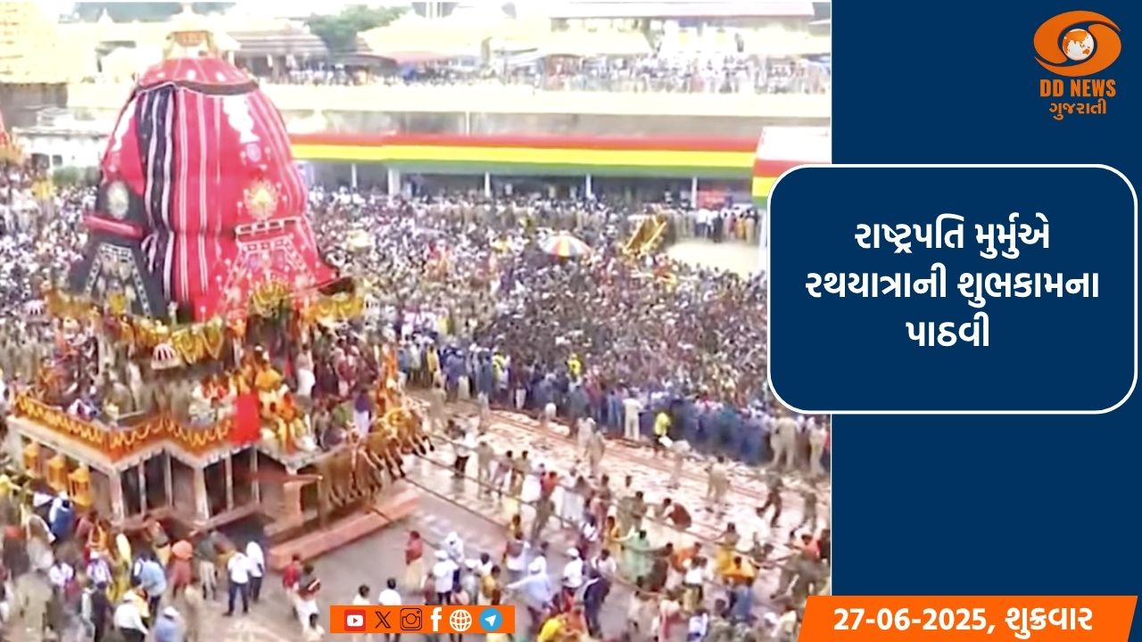 રાષ્ટ્રપતિ દ્રૌપદી મુર્મુએ કહ્યું, "પવિત્ર રથયાત્રા નિમિત્તે, હું દેશ અને વિદેશમાં રહેતા મહાપ્રભુ જગન્નાથના ભક્તોને મારી હૃદયપૂર્વકની શુભકામનાઓ પાઠવું છું. લાખો ભક્તો બડે ઠાકુર બલભદ્ર, મહાપ્રભુ શ્રી જગન્નાથ, દેવી સુભદ્રા અને ચક્રરાજ સુદર્શનને રથ પર બેઠેલા જોઈને દિવ્ય અનુભવ મેળવે છે."તેમણે કહ્યું, "આ દિવ્ય સ્વરૂપોની માનવ લીલા રથયાત્રાની વિશેષતા છે. આ શુભ પ્રસંગે, મહાપ્રભુ શ્રી જગન્નાથને મારી પ્રાર્થના છે કે સમગ્ર વિશ્વમાં શાંતિ, મિત્રતા અને સ્નેહનું વાતાવરણ રહે."