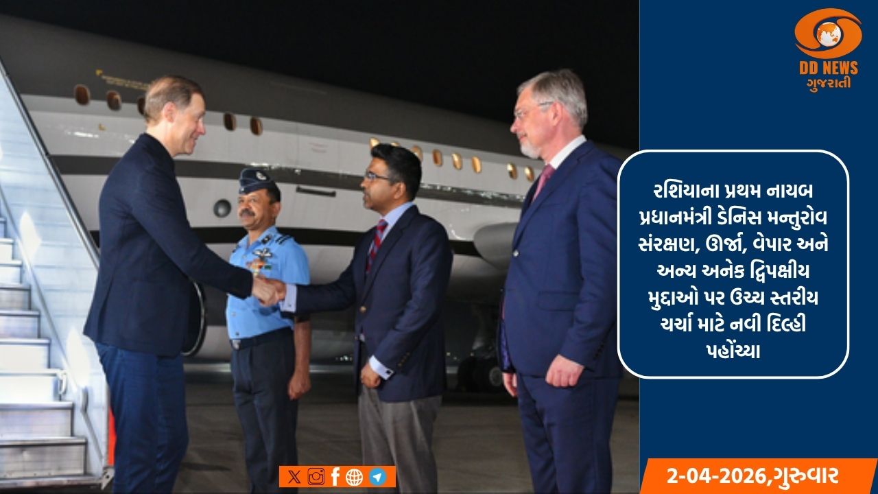 રશિયાના પ્રથમ નાયબ પ્રધાનમંત્રી ડેનિસ મન્તુરોવ ગુરુવારે વહેલી સવારે સંરક્ષણ, ઊર્જા, વેપાર અને અન્ય અનેક દ્વિપક્ષીય મુદ્દાઓ પર ઉચ્ચ સ્તરીય ચર્ચા માટે નવી દિલ્હી પહોંચ્યા. પાલમ એરપોર્ટ પર ડેનિસનું ઉષ્માભર્યું સ્વાગત કરવામાં આવ્યું.