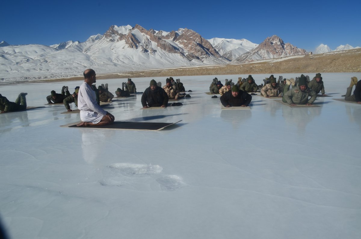 જમીનથી હજારો ફૂટની ઊંચાઈ પર હિમાલયના હિમવીર યોગ કરી રહ્યા છે, હાડ થીજવતી ઠંડીમાં જવાનો યોગ કરી રહ્યા છે.