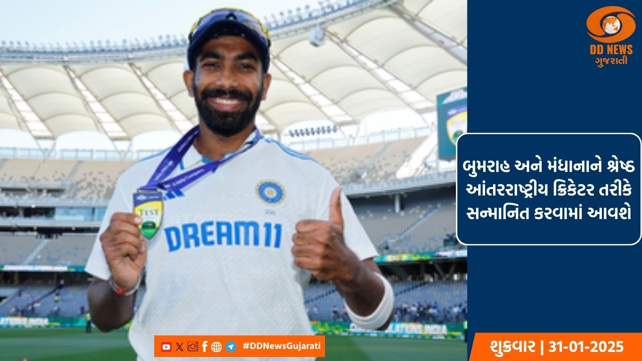 બુમરાહ અને મંધાનાને શ્રેષ્ઠ આંતરરાષ્ટ્રીય ક્રિકેટર તરીકે સન્માનિત કરવામાં આવશે