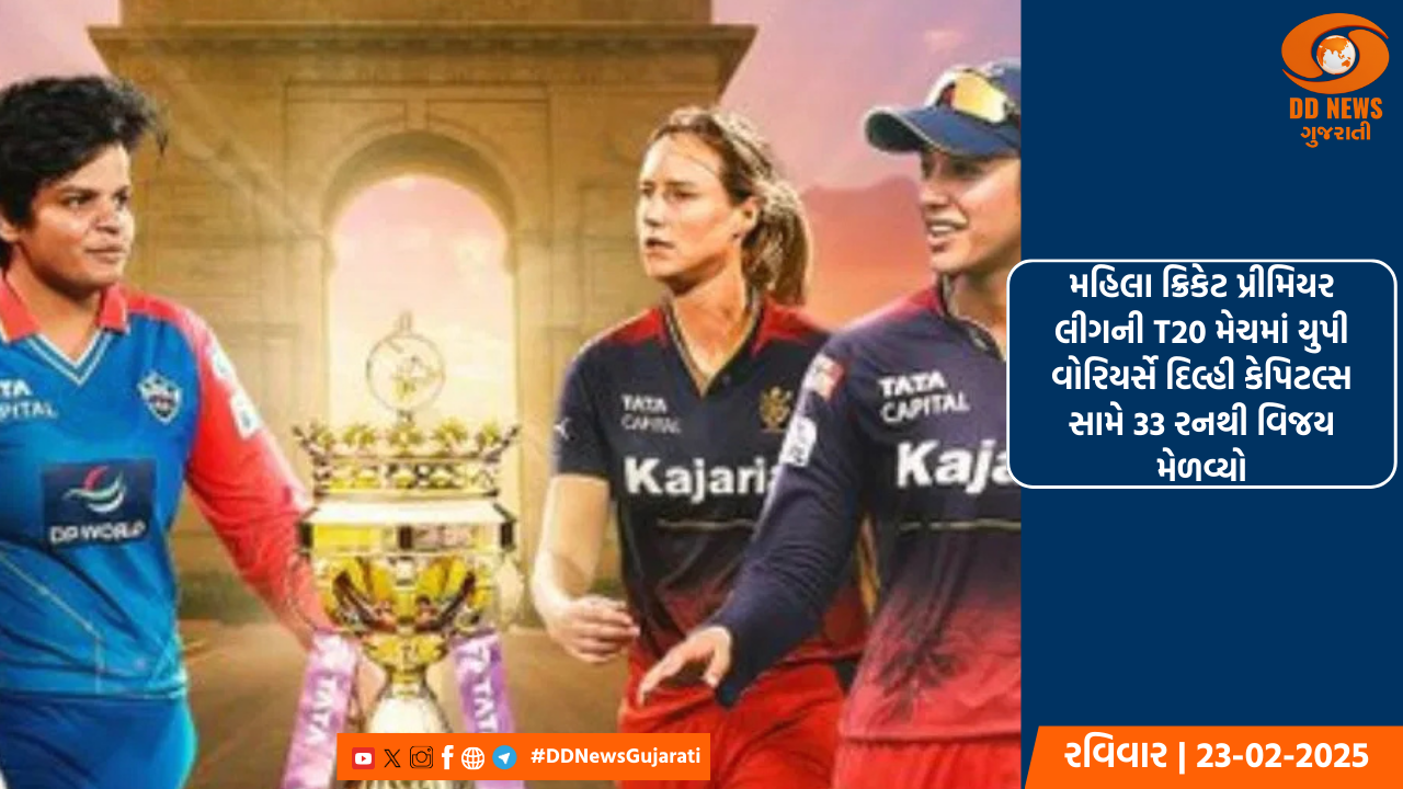 મહિલા ક્રિકેટ પ્રીમિયર લીગની T20 મેચમાં યુપી વોરિયર્સે દિલ્હી કેપિટલ્સ સામે 33 રનથી વિજય મેળવ્યો