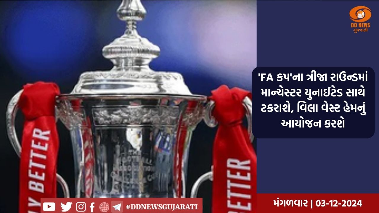 'FA કપ'ના ત્રીજા રાઉન્ડમાં માન્ચેસ્ટર યુનાઈટેડ સાથે ટકરાશે, વિલા વેસ્ટ હેમનું આયોજન કરશે