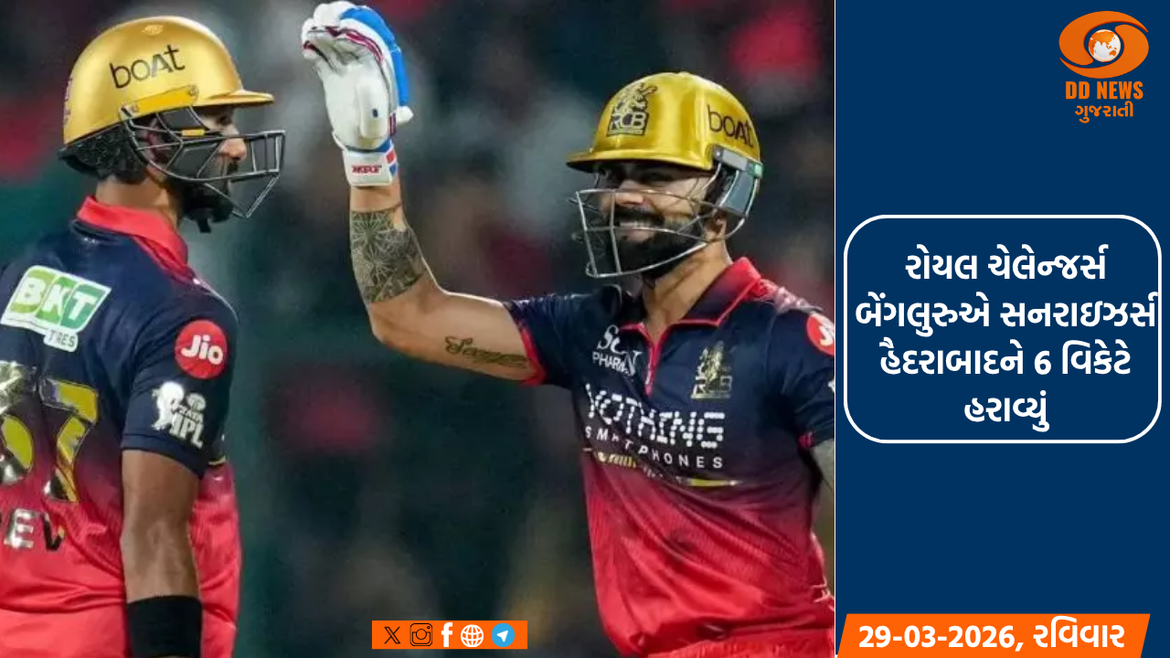 રોયલ ચેલેન્જર્સ બેંગલુરુએ સનરાઇઝર્સ હૈદરાબાદને 6 વિકેટે હરાવ્યું. RCBએ 202 રનનો લક્ષ્યાંક માત્ર 15.4 ઓવરમાં હાંસલ કરી લીધો. વિરાટ કોહલીએ 38 બોલમાં 69 રન અને દેવદત્ત પડિક્કલે 26 બોલમાં 61 રનની ઇનિંગ રમી. જેકબ ડફીએ SRHના ટ્રેવિસ હેડ, અભિષેક શર્મા અને નીતીશ કુમાર રેડ્ડીની 3 મહત્વની વિકેટ ઝડપી.