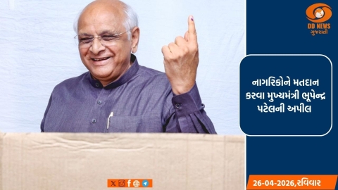 રવિવારે 26 એપ્રિલે યોજાનારી સ્થાનિક સ્વરાજ્યની સંસ્થાઓની ચૂંટણી માટે 100 ટકા મતદાન કરવા મુખ્યમંત્રી ભૂપેન્દ્ર પટેલની મતદારોને હાર્દિક અપીલ