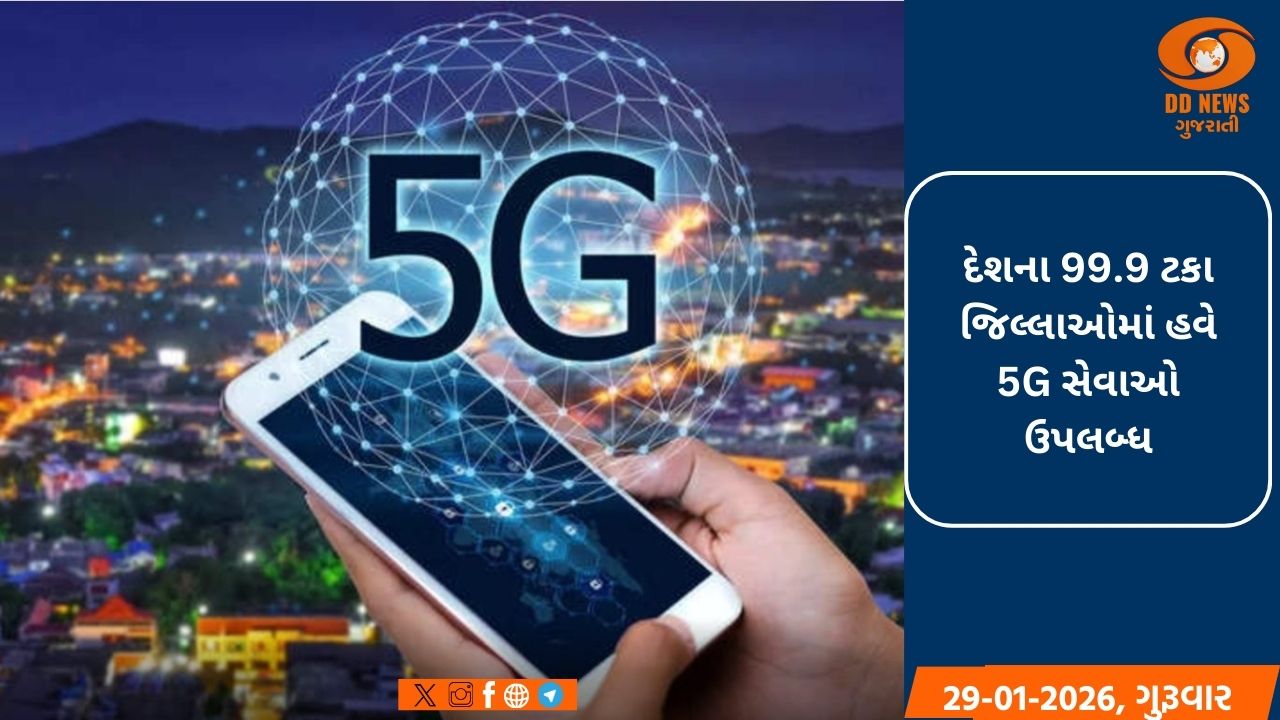 દેશના 99.9 ટકા જિલ્લાઓમાં હવે 5G સેવાઓ ઉપલબ્ધ છે, અને ટેલિડેન્સિટી 86.76 ટકા સુધી પહોંચી છે. ગુરુવારે નાણામંત્રી નિર્મલા સીતારમણ દ્વારા જાહેર કરાયેલા આર્થિક સર્વેક્ષણમાં આ માહિતી આપવામાં આવી હતી.