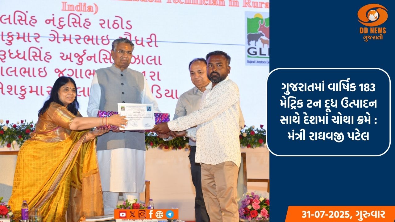 પશુપાલન મંત્રી રાઘવજી પટેલે આ પ્રસંગે જણાવ્યું હતું કે, પ્રધાનમંત્રી નરેન્દ્ર મોદીએ કંડારેલા પથ પર આગળ વધીને આજે ગુજરાતે પશુપાલન અને ડેરી ઉદ્યોગ ક્ષેત્રે સમગ્ર દેશમાં પોતાની આગવી ઓળખ ઉભી કરી છે. જેમાં રાજ્યના પશુપાલકો ઉપરાંત પશુ સારવાર માટે કામ કરતા રાજ્યના પશુ ચિકિત્સકોની ભૂમિકા ખૂબ જ મહત્વપૂર્ણ રહી છે. આજે વિશ્વના કુલ દૂધ ઉત્પાદનમાં ભારતનો ફાળો 25 ટકા છે અને ભારતમાં દૂધ ઉત્પાદન ક્ષેત્રે ગુજરાત ચોથા ક્રમે છે. ગુજરાતમાં વાર્ષિક 183 મેટ્રિક ટન દૂધ ઉત્પાદન થઇ રહ્યું છે.