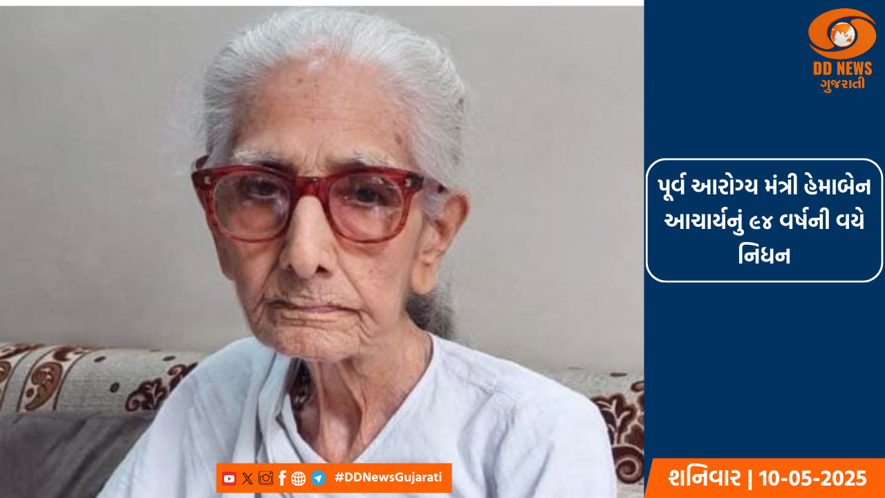 પૂર્વ આરોગ્ય મંત્રી હેમાબેન આચાર્યનું ૯૪ વર્ષની જૈફ વયે નિધન