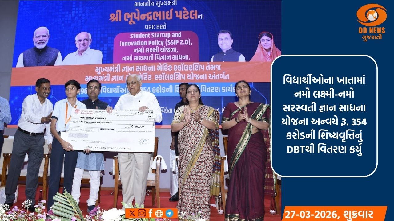 શિક્ષણની વિવિધ યોજનાઓ અંતર્ગત રાજ્યના 13 લાખથી વધુ વિદ્યાર્થીઓને રૂ. 354 કરોડથી વધુની સહાય રકમ ડાયરેક્ટ બેનિફિટ ટ્રાન્સફરના માધ્યમથી આજે મુખ્યમંત્રીના હસ્તે વિતરણ કરવામાં આવ્યું તે આ પારદર્શી સરકારનું એક વધુ પારદર્શિક પગલું છે તેમ, શિક્ષણ મંત્રી ડૉ. પ્રદ્યુમન વાજાએ જણાવ્યું હતું.મંત્રીએ કહ્યું હતું કે, બાળકને સમાન અને વિશ્વસ્તરીય શિક્ષણ આપીને ગુજરાત વિકસિત ભારત@2047ના સ્વપ્નને સાકાર કરવા મજબૂત આધારસ્તંભ બન્યું છે. સ્ટાર્ટઅપ એટલે ઉદ્યેગ સાહાસિકતા-એન્ટરપ્રેન્યોરશિપની દિશામાં સતત પ્રયત્ન છે. રાજ્યના જે 735 સ્ટાર્ટઅપ ઇનોવેશન આઈડિયા પસંદ થયા છે અને તેના પર કામ કરવા છે એ તમામ 1400 થી વધારે વિદ્યાર્થીઓની સ્ટાર્ટઅપ સફર શરૂ થઈ ચૂકી છે. તેમણે કહ્યું કે, ગુજરાત એ એવું રાજ્ય બન્યું છે કે જે શાળા કક્ષાએ સ્ટાર્ટઅપ ઇનોવેશનના આઈડિયા પર રૂ. 20 હજાર સુધીની ગ્રાન્ટ આપે છે જેનો મૂળ હેતુ શાળાથી જ વિદ્યાર્થીઓમાં ઉદ્યોગ સાહસિકતા પ્રત્યે રૂચિ વિકસાવવાનો છે. મંત્રી ડૉ. વાજાએ કહ્યું હતું કે, નમો લક્ષ્મી યોજના અને નમો સરસ્વતી વિજ્ઞાન સાધના યોજના થકી છેલ્લા બે વર્ષમાં શાળામાં પ્રવેશ લેનાર વિદ્યાર્થીનીઓની સંખ્યામાં નોંધપાત્ર વધારો થયો છે, જે આ યોજનાની સફળતા દર્શાવે છે. આ સફળતાને ધ્યાનમાં લઈ અને આગામી વર્ષમાં બંને યોજનાઓ માટે મુખ્યમંત્રીના નેતૃત્વમાં સરકાર દ્વારા રૂ. 1500 કરોડની બજેટમાં જોગવાઈ કરવામાં આવી છે.તેમણે કહ્યું કે, પ્રધાનમંત્રી નરેન્દ્ર મોદીના માર્ગદર્શનમાં અને રાજ્યના મુખ્યમંત્રી ભૂપેન્દ્ર પટેલના નેતૃત્વમાં ગુજરાતમાં શિક્ષણ ક્ષેત્રે એક ક્રાંતિ આવી છે, ત્યારે શિક્ષણ એ માત્ર અભ્યાસ નથી પરંતુ વિદ્યાર્થીઓનું સ્વપ્નું છે.