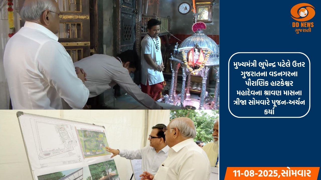 મુખ્યમંત્રી ભૂપેન્દ્ર પટેલે ઉત્તર ગુજરાતના વડનગરના પૌરાણિક હાટકેશ્વર મહાદેવના શ્રાવણ માસના ત્રીજા સોમવારે કર્યા દર્શન