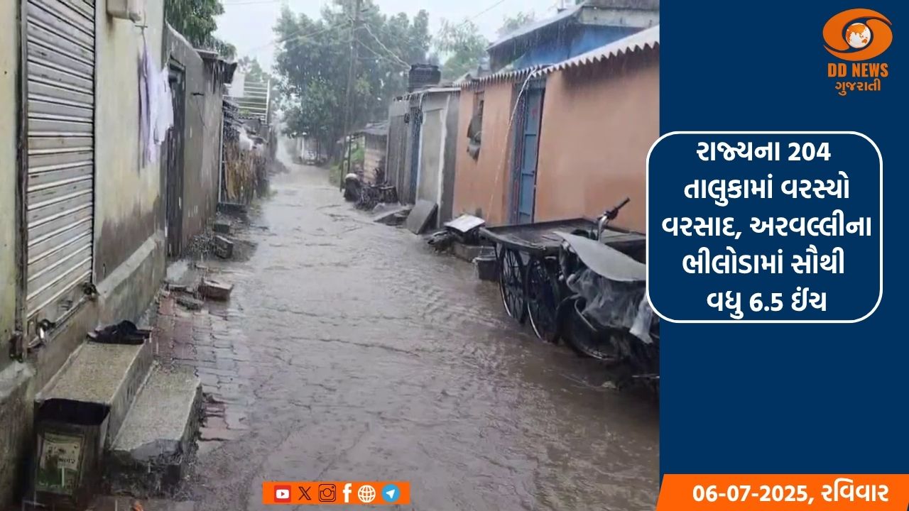 રાજ્યના 204 તાલુકામાં વરસ્યો વરસાદ, અરવલ્લીના ભીલોડામાં સૌથી વધુ 6.5 ઈંચ