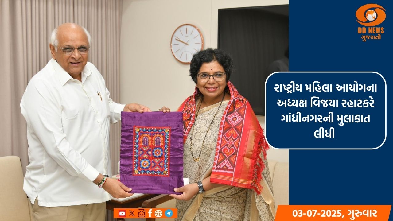 મુખ્યમંત્રી ભૂપેન્દ્ર પટેલની શુભેચ્છા મુલાકાત રાષ્ટ્રીય મહિલા આયોગના અધ્યક્ષ વિજયા રહાટકરે ગાંધીનગરમાં લીધી હતી.