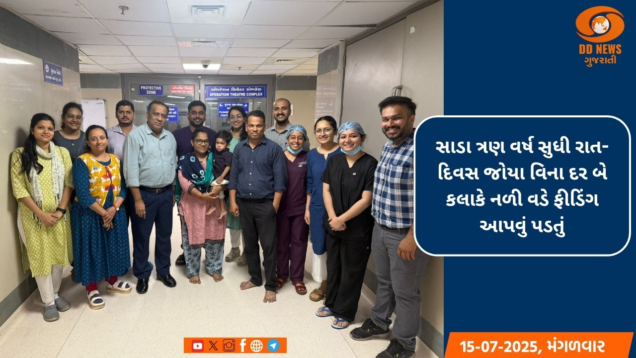 એક દુર્લભ ખામીને કારણે જન્મથી જ નળી દ્વારા ખોરાક લઈ જીવતા શ્લોક નામના બાળકે સાડા ત્રણ વર્ષ પછી જિંદગીમાં પહેલીવાર મોંઢાથી ખાઈને ભોજનનો આનંદ માણ્યો છે.સિવિલ હોસ્પિટલના પીડિયાટ્રિક સર્જરી વિભાગના ડૉક્ટરોએ સાડા ત્રણ વર્ષના બાળક ઉપર અત્યંત જટીલ એવી ગેસ્ટ્રિક પુલઅપ સર્જરી સફળતાપૂર્વક પાર પાડીને બાળકને નવી જિંદગી આપી છે.