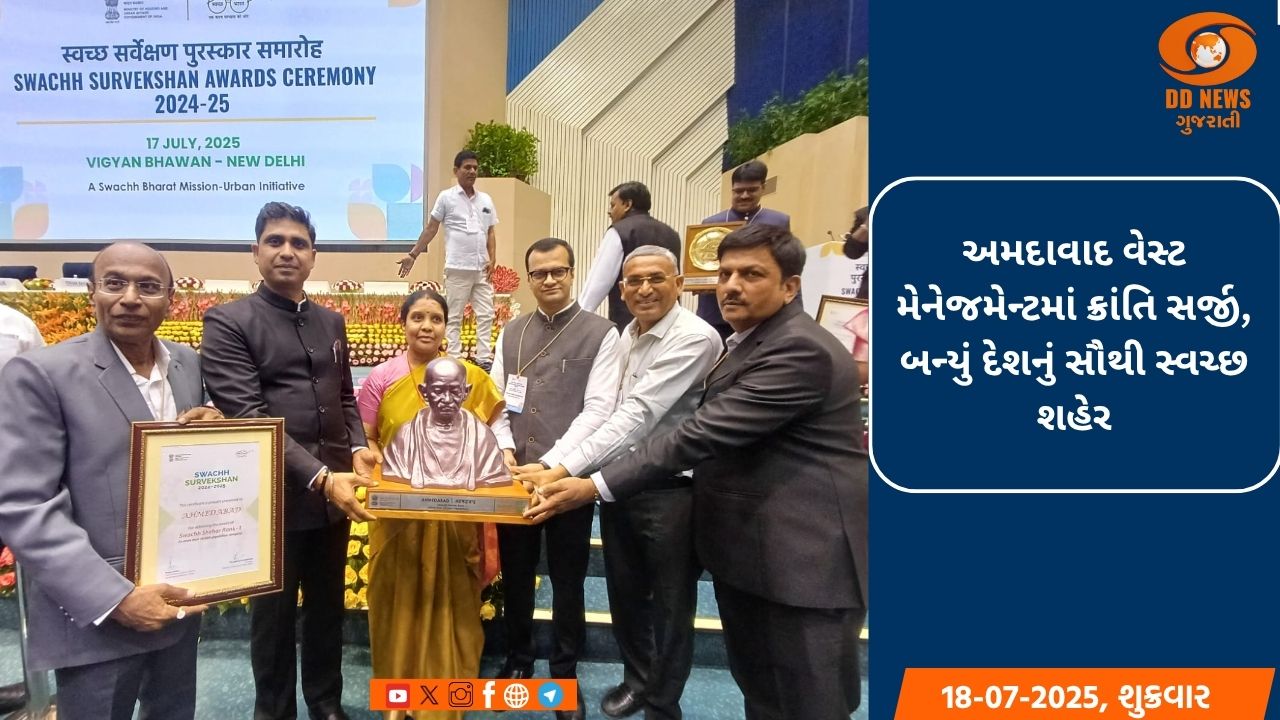 અમદાવાદે સ્વચ્છ સર્વેક્ષણ વર્ષ 2024-25 માં દસ લાખથી વધુની વસ્તી ધરાવતી શહેરોની ‘ગ્રીનેસ્ટ બિગ સિટી’ શ્રેણીમાં દેશનું સૌથી સ્વચ્છ શહેર બનીને ગૌરવ પ્રાપ્ત કર્યું છે.