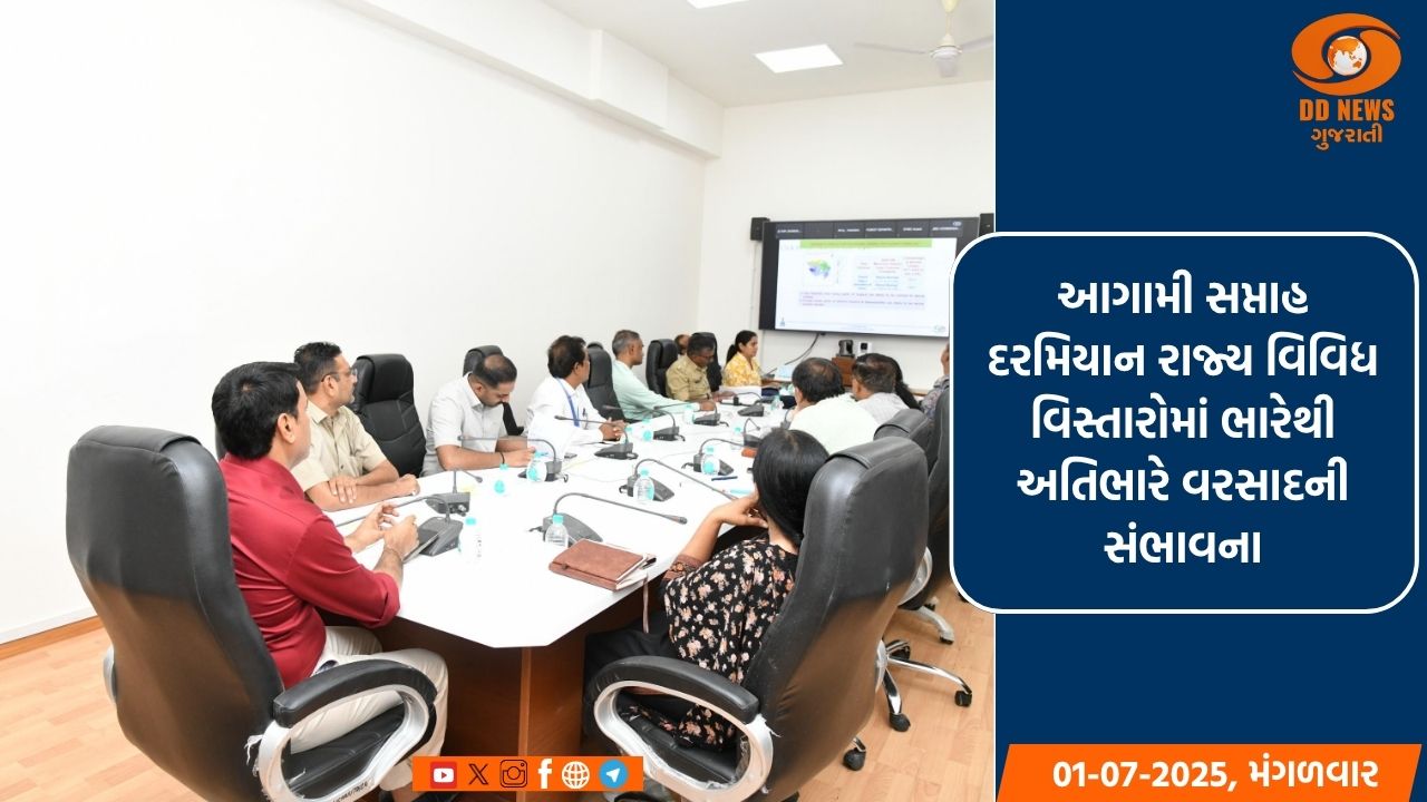 જેમાં રાજ્યમાં ચોમાસાની સ્થિતિ અને તે માટે સંબંધિત વિભાગોની તૈયારી અંગે સમીક્ષા હાથ ધરવામાં આવી હતી. રાહત કમિશનરએ રાજ્યમાં સંભવિત તમામ પરિસ્થિતિને પહોંચી વળવા વિભાગોને જરૂરી માર્ગદર્શન અને સૂચનાઓ આપી હતી. આ બેઠકમાં હવામાન વિભાગના અધિકારીએ રાજ્યમાં વરસાદની સ્થિતિ અંગે માહિતી આપતા જણાવ્યું હતું કે, રાજ્યમાં છેલ્લા કેટલાક દિવસથી વરસાદ વરસી રહ્યો છે. આગામી સપ્તાહમાં રાજ્યના વિવિધ વિસ્તારોમાં ભારેથી અતિભારે વરસાદ વરસવાની સંભાવના છે. આ સંદર્ભે સંબંધિત વિભાગો સાથે જરૂરી ચર્ચા કરી સંભવિત જોખમો સામે એલર્ટ રહેવા તેમણે જણાવ્યું હતું.