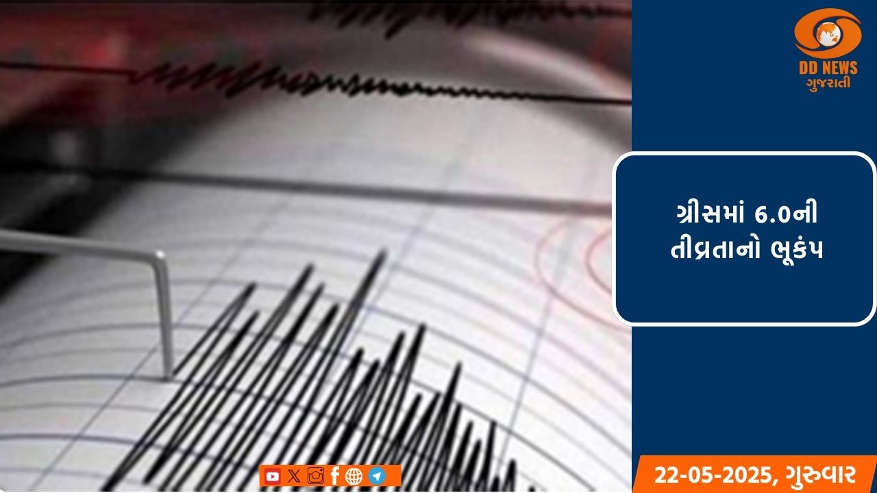 ગ્રીસમાં 6.0 ની તીવ્રતાનો ભૂકંપ આવ્યો છે, જેના પગલે સુનામીની ચેતવણી જારી કરવામાં આવી છે. જર્મન રિસર્ચ સેન્ટર ફોર જીઓસાયન્સના અહેવાલ મુજબ, ગુરુવારે ગ્રીસના ક્રેટના કિનારે 6.0 ની તીવ્રતાનો ભૂકંપ આવ્યો હતો .