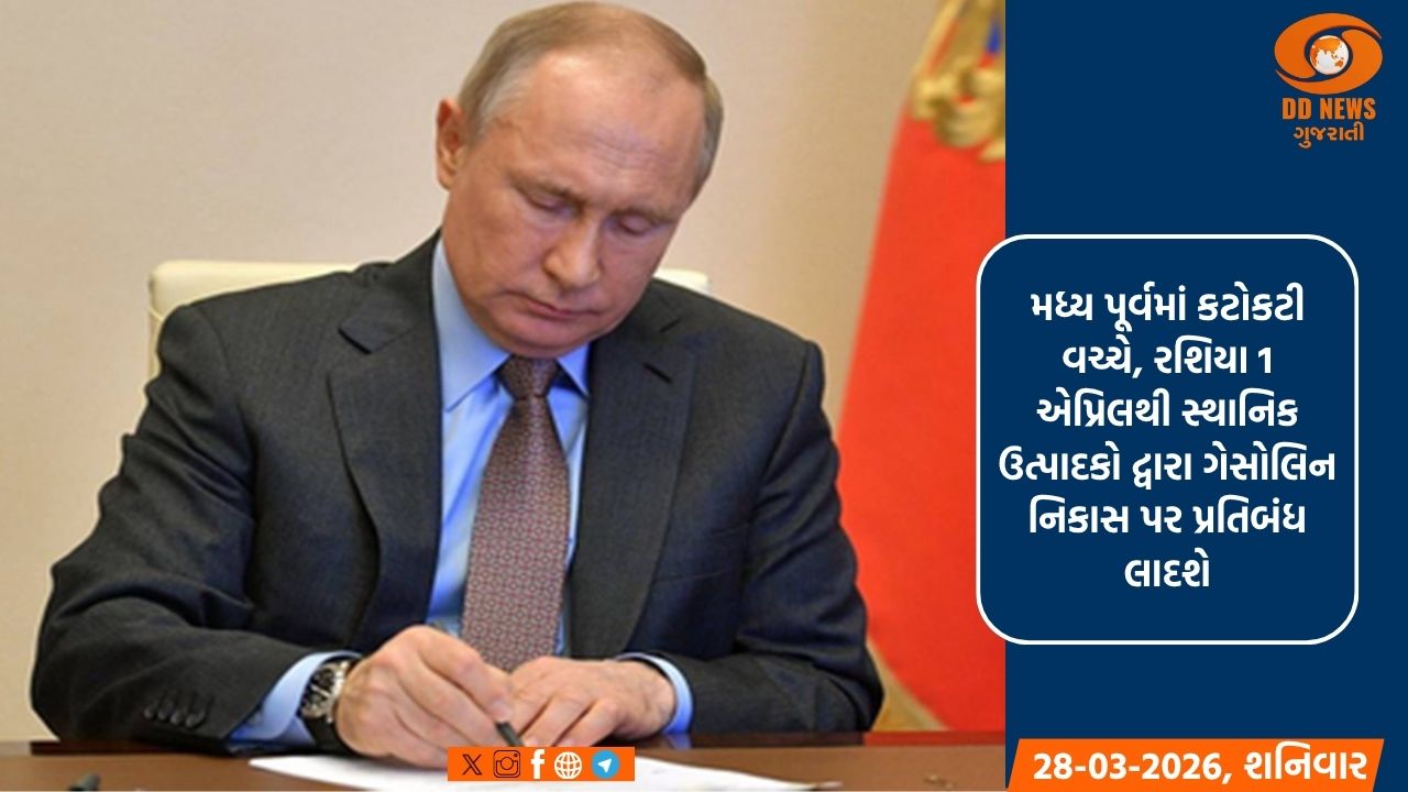 મધ્ય પૂર્વમાં કટોકટી વચ્ચે, રશિયા 1 એપ્રિલથી સ્થાનિક ઉત્પાદકો દ્વારા ગેસોલિન નિકાસ પર પ્રતિબંધ લાદશે. રશિયન સરકારના નિવેદન અનુસાર, નાયબ વડા પ્રધાન એલેક્ઝાન્ડર નોવાકે શુક્રવારે આ જાહેરાત કરી. આ પ્રતિબંધ 31 જુલાઈ સુધી અમલમાં રહેશે.