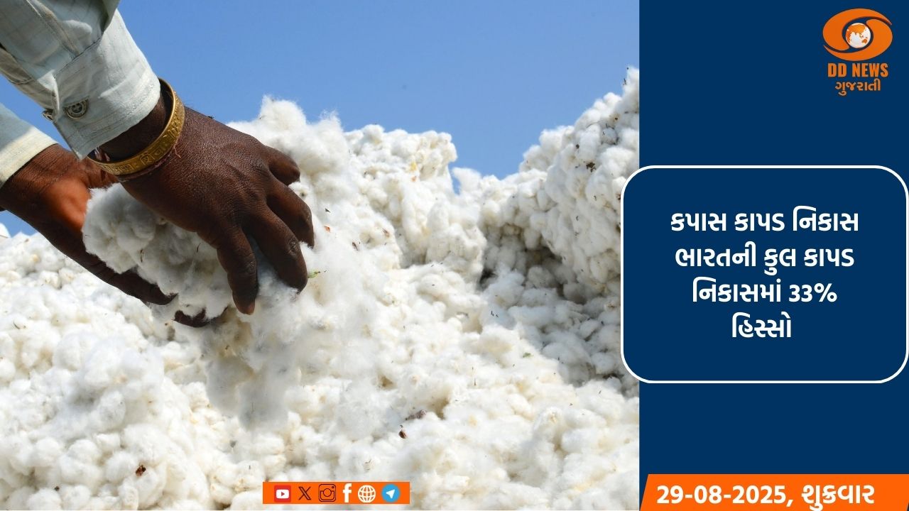 કપાસ કાપડ નિકાસ ભારતની કુલ કાપડ નિકાસમાં 33% હિસ્સો ધરાવે છે, જે કપાસની માંગને ટકાવી રાખવામાં મદદ કરે છે અને ખેડૂતોને સીધો ફાયદો પહોંચાડે છે. વિવિધ કાપડ સંગઠનોએ 31 ડિસેમ્બર 2025 સુધી કપાસની તમામ જાતો પર આયાત ડ્યુટીમાં 11% મુક્તિ આપવાના સરકારના પગલાનું સ્વાગત કર્યું છે.ટેક્સટાઇલ મંત્રાલયે ગુરુવારે જારી કરેલા એક નિવેદનમાં આ માહિતી આપી છે. સેન્ટ્રલ બોર્ડ ઓફ ઇન્ડાયરેક્ટ ટેક્સીસ એન્ડ કસ્ટમ્સ દ્વારા સૂચિત આ નિર્ણયથી યાર્ન, ફેબ્રિક, એપેરલ અને મેડ-અપ્સ સહિત સમગ્ર કાપડ મૂલ્ય શૃંખલાના ઇનપુટ ખર્ચમાં સ્થિરતા આવવાની અપેક્ષા છે, જેનાથી ઉત્પાદકો અને ગ્રાહકો બંનેને રાહત મળશે.