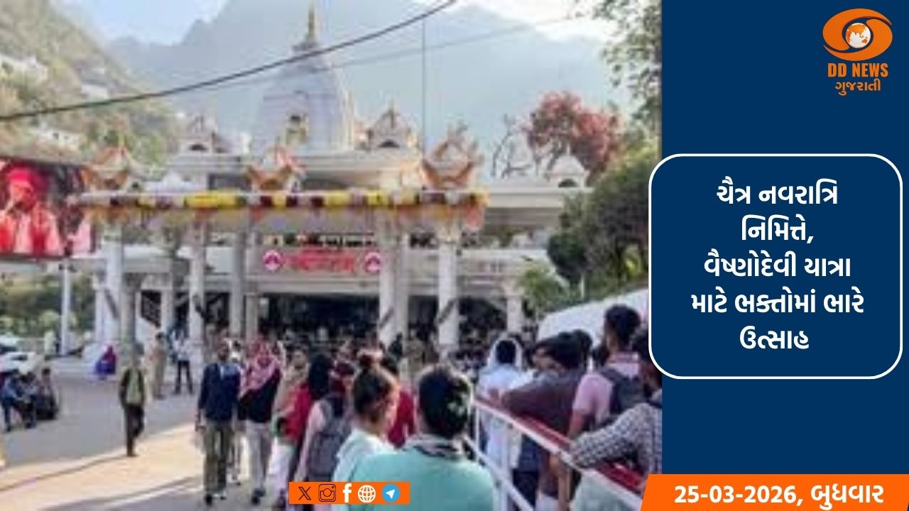બુધવારે, ચૈત્ર નવરાત્રિના સાતમા દિવસે, જમ્મુ અને કાશ્મીરના કટરા સ્થિત દર્શની દેવરી ખાતે ભક્તોની મોટી ભીડ જોવા મળી હતી. પવિત્ર શ્રી માતા વૈષ્ણોદેવી મંદિરની યાત્રા અહીં શરૂ થાય છે, અને સવારથી જ ભક્તો આવી રહ્યા છે. દેશના વિવિધ ભાગોમાંથી લોકો માતા દેવીના દર્શન કરવા આવ્યા છે. "જય માતા દી" ના નારાઓથી સમગ્ર વાતાવરણ ભક્તિથી ભરાઈ ગયું હતું, અને દરેક વ્યક્તિ માતા દેવીના દર્શન કરવા માટે ઉત્સાહિત દેખાતા હતા.