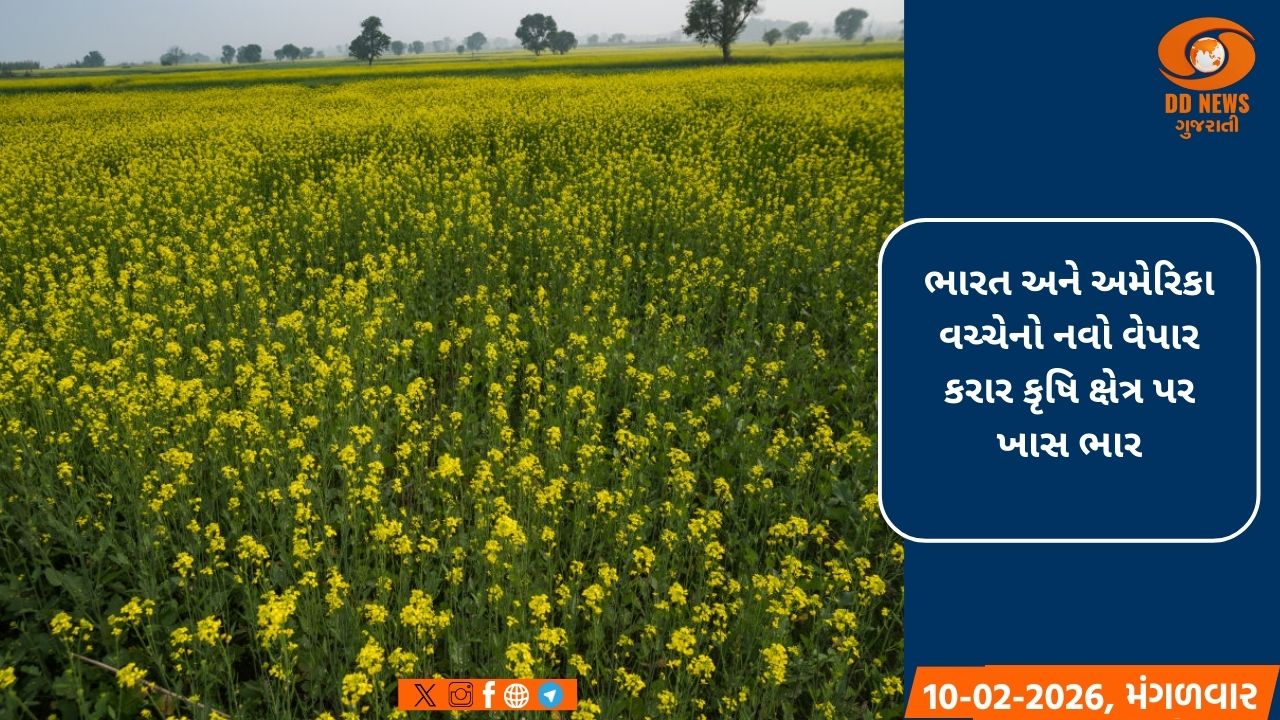 ભારત અને અમેરિકા વચ્ચેનો નવો વેપાર કરાર કૃષિ ક્ષેત્ર પર ખાસ ભાર મૂકે છે. આ કરાર ભારતના કૃષિ નિકાસ વધારવાની તકો પૂરી પાડે છે, તે ભારતીય ખેડૂતોના હિતોનું પણ રક્ષણ કરે છે. તેથી, તેને સંતુલિત અને વ્યૂહાત્મક કરાર માનવામાં આવે છે.