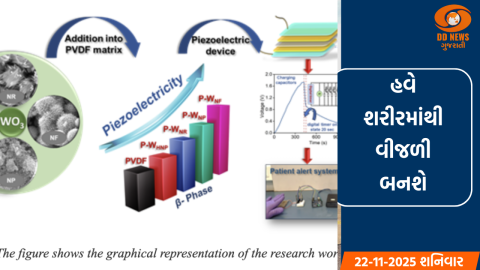 દેશના વૈજ્ઞાનિકોએ એક એવો ખાસ લચીલો પદાર્થ તૈયાર કર્યો છે, જે શરીરના સામાન્ય હલનચલન, જેમ કે હૃદયના ધબકારા, શ્વાસ લેવો, આંગળીઓની હિલચાલ અથવા ચાલવાથી પોતે જ વીજળી પેદા કરી શકે છે. આ સિદ્ધિ બૅંગ્લુરુ સ્થિત સેન્ટર ફોર નેનો એન્ડ સોફ્ટ મૅટર સાયન્સિસ (CeNS)ના વૈજ્ઞાનિકોએ હાંસલ કરી છે, જે વિજ્ઞાન અને ટેક્નૉલૉજી મંત્રાલયની સ્વાયત્ત સંસ્થા છે.