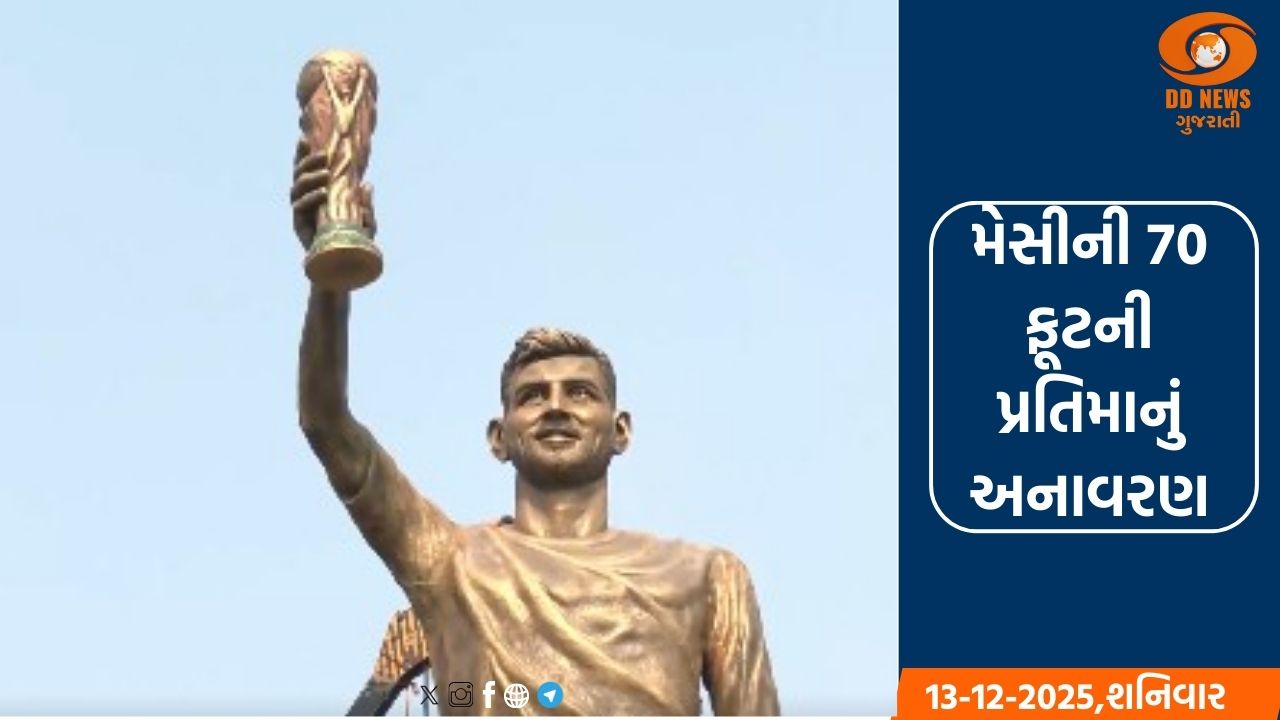 કોલકત્તામાં દિગ્ગજ ફૂટબોલર લિયોનલ મેસીએ પોતાની 70 ફૂટની પ્રતિમાનું અનાવરણ કર્યું