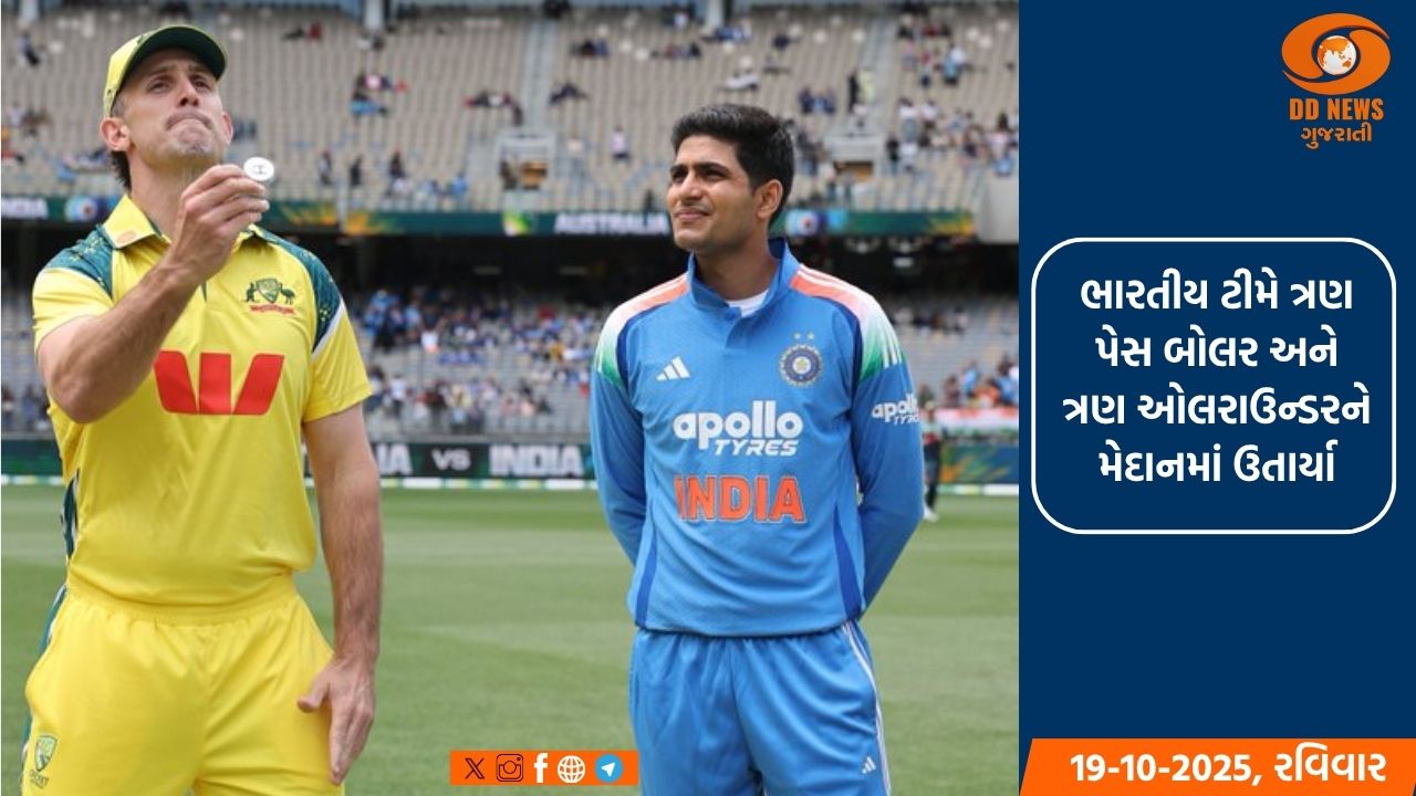 ભારત-ઓસ્ટ્રેલિયા ODI શ્રેણીની પહેલી મેચ પર્થ સ્ટેડિયમ ખાતે રમાઈ રહી છે. ઓસ્ટ્રેલિયાના કેપ્ટન મિશેલ માર્શે રવિવારે અહીં ભારત સામેની પ્રથમ વનડેમાં ટોસ જીતીને પ્રથમ બોલિંગ કરવાનો નિર્ણય લીધો. . તેમણે કહ્યું, "વિકેટ સારી લાગે છે, થોડી ભેજ છે. અમે પહેલા બોલિંગ કરીશું." ભારતીય કેપ્ટન શુભમન ગિલે કહ્યું, "અમે પણ બોલિંગ કરવા માંગતા હતા. જોકે, અમે તેના માટે તૈયાર છીએ."