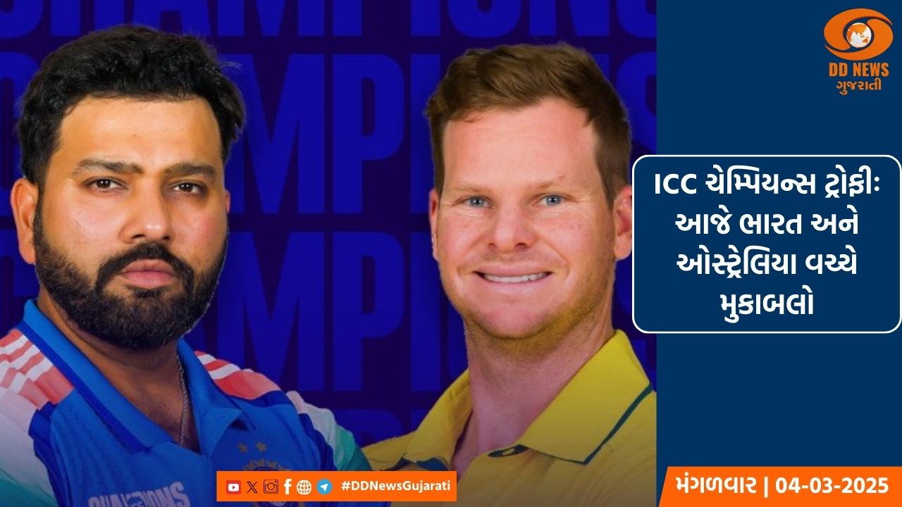 ICC ચેમ્પિયન્સ ટ્રોફીની પહેલી સેમિફાઇનલ મેચમાં આજે ભારત અને ઓસ્ટ્રેલિયા વચ્ચે મુકાબલો. આ મેચ ભારતીય સમય મુજબ બપોરે 2.30 વાગ્યે શરૂ થશે.